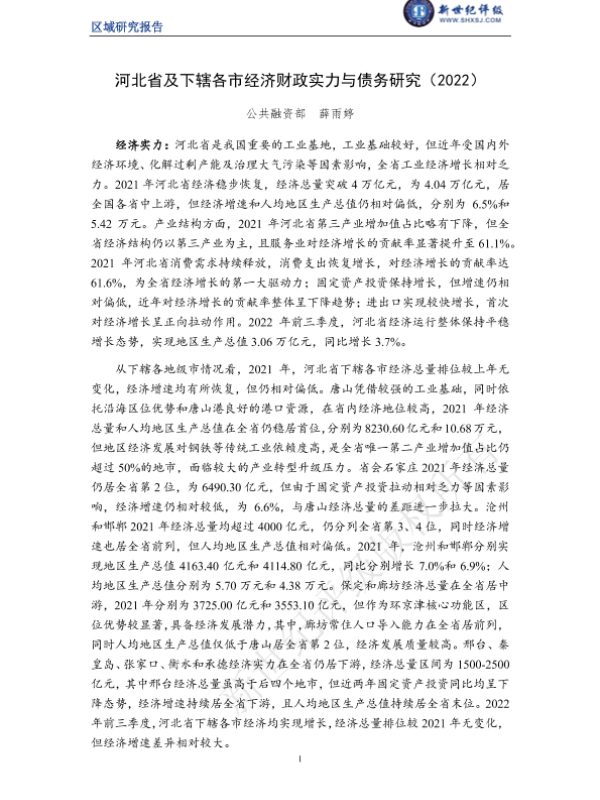 【新世纪评级】【20220101】河北省及下辖各市经济财政实力与债务研究(2022)-23页