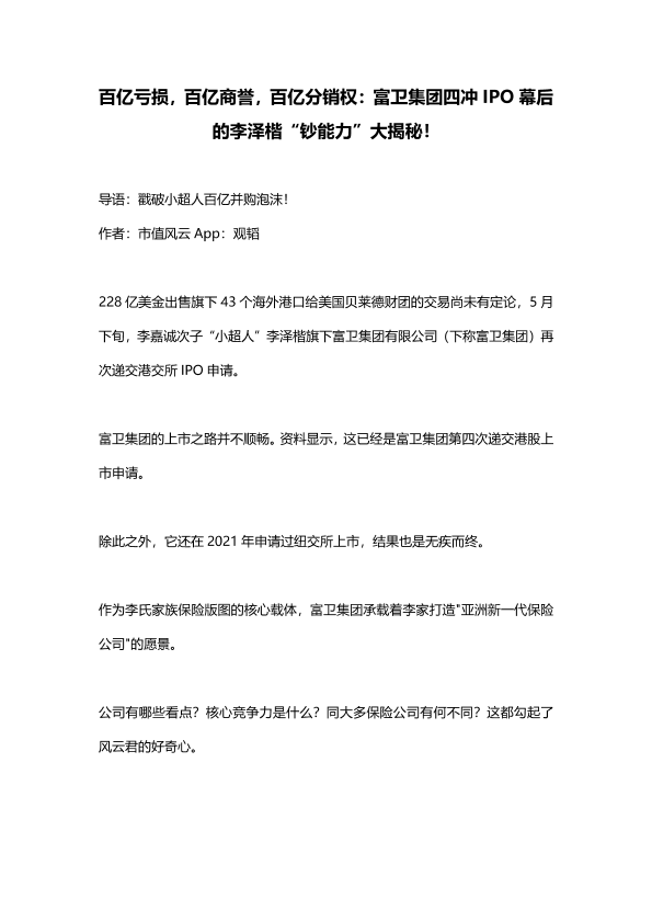 【市值风云】【2023】百亿亏损,百亿商誉,百亿分销权:富卫集团四冲IPO幕后的李泽楷“钞能力”大揭秘!-27页
