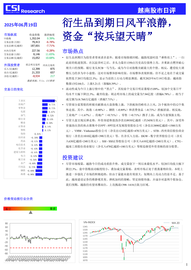 【越南建设】【20250619】股市日评:衍生品到期日风平浪静,资金“按兵望天晴"-3页