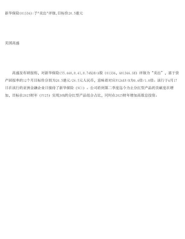 分红型产品 卖出评级 目标价 高股息投资 新华保险