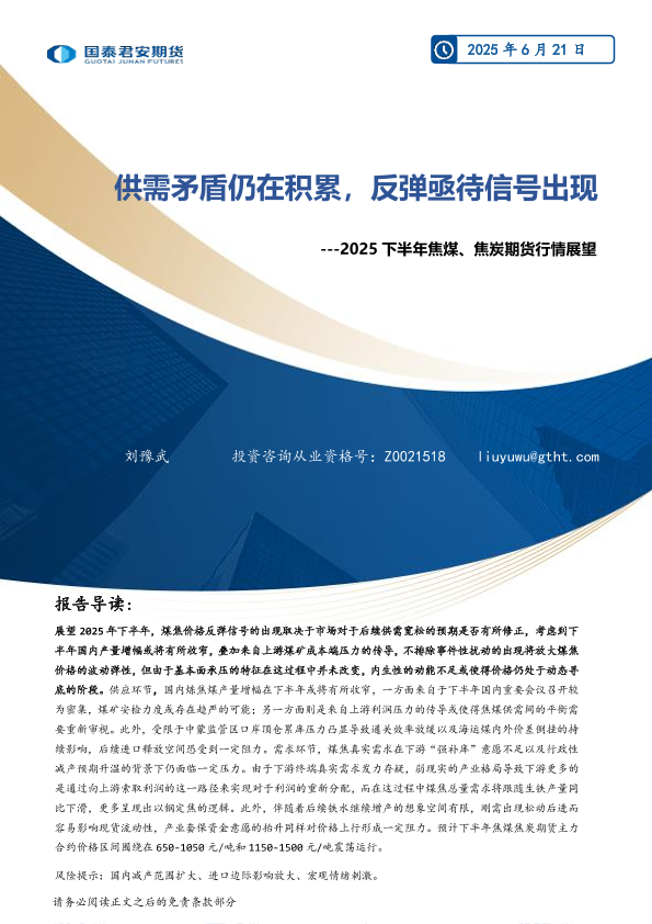 【国泰君安期货】【20250621】2025下半年焦煤_焦炭期货行情展望_供需矛盾仍在积累_反弹亟待信号出现-15页