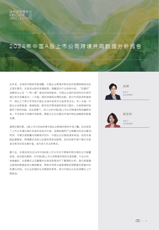 【金杜律师事务所】【2024】2024年中国A股上市公司跨境并购数据分析报告-15页