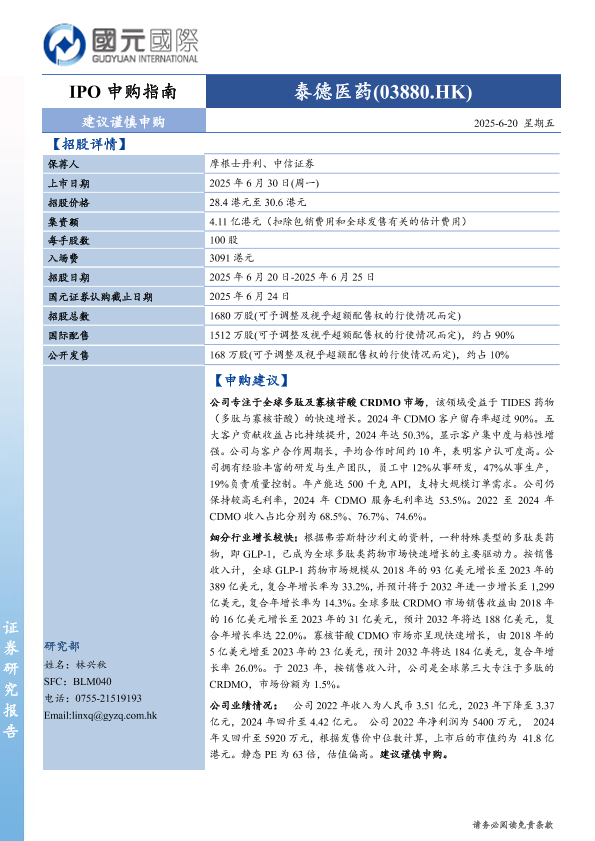 【国元国际】【20250620】IPO申购指南 泰德医药(03880.HK)-3页