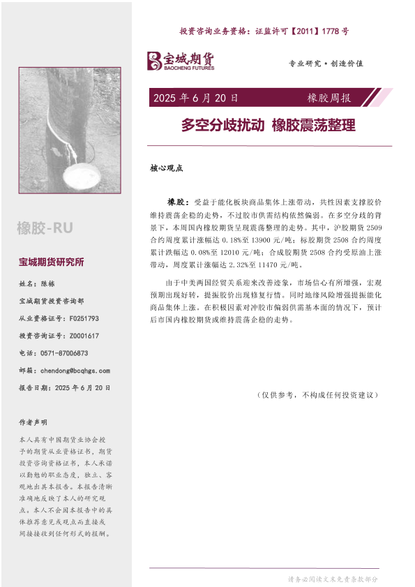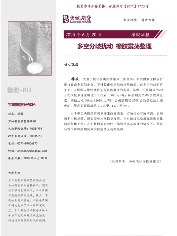 【宝城期货】【20250620】橡胶周报_多空分歧扰动_橡胶震荡整理-13页