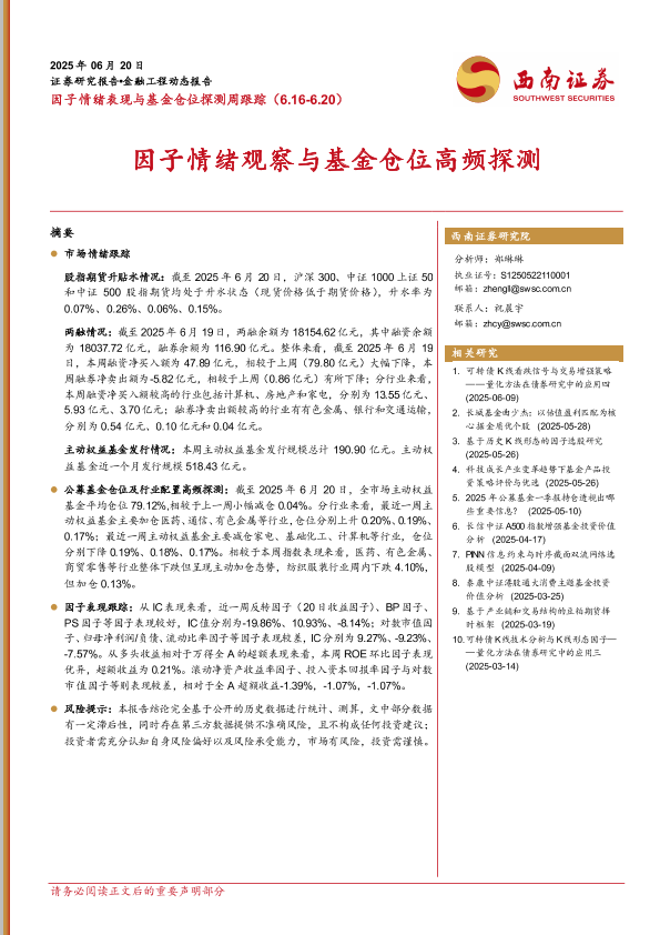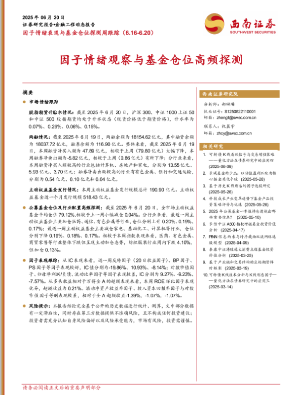 【西南证券】【20250620】因子情绪表现与基金仓位探测周跟踪-15页