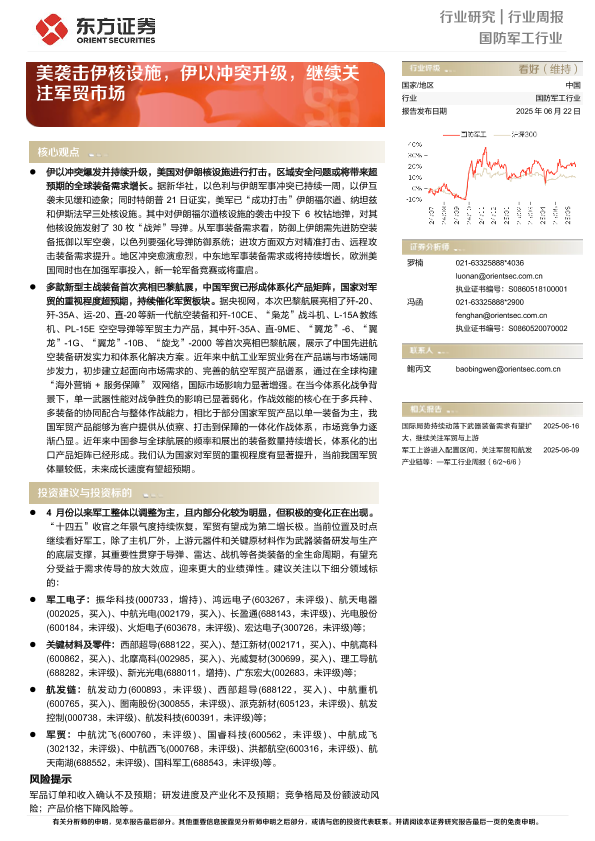 【东方证券】【20250622】国防军工行业行业周报——美袭击伊核设施,伊以冲突升级,继续关注军贸市场-12页