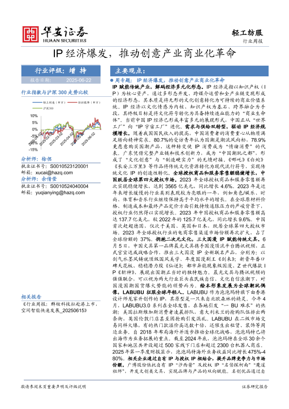 【华安证券】【20250622】轻工纺服行业周报_IP经济爆发_推动创意产业商业化革命-23页