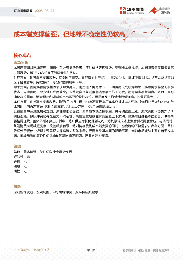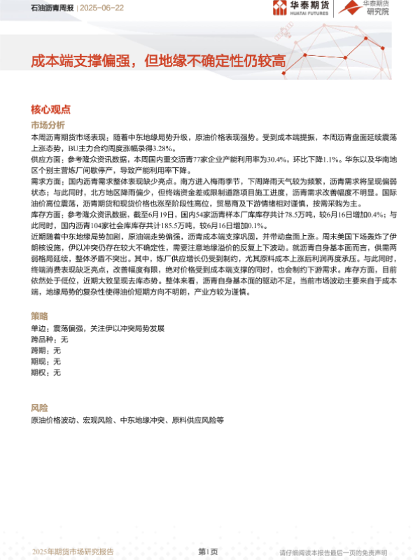 【华泰期货】【20250622】石油沥青周报-7页