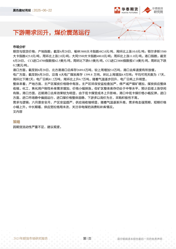 【华泰期货】【20250622】黑色建材周报_下游需求回升_煤价震荡运行-7页