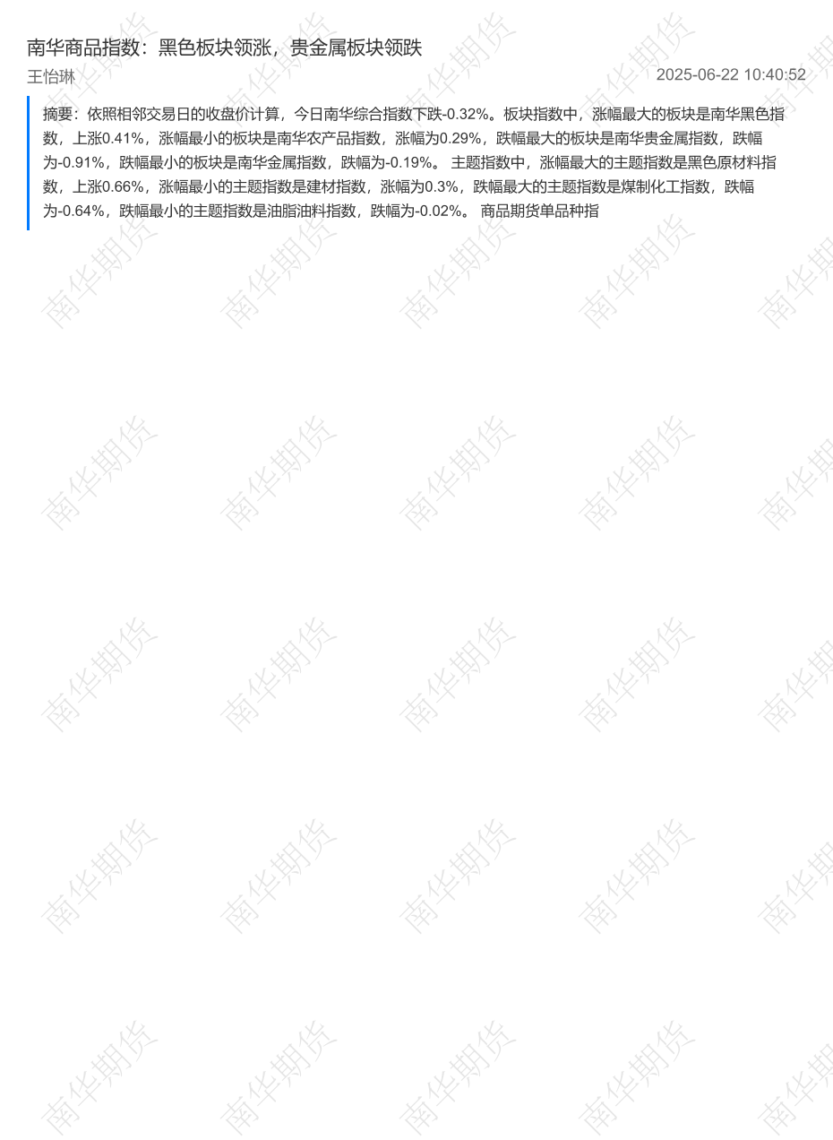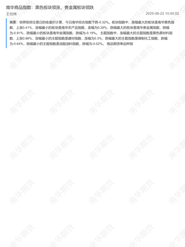 【南华期货】【20250622】南华商品指数_黑色板块领涨_贵金属板块领跌-2页