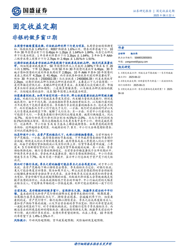【国盛证券】【20250622】固定收益定期:非银的做多窗口期-6页