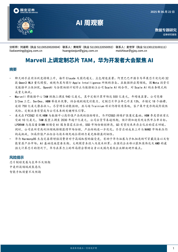 AI芯片 HBM TAM预期 定制计算 数据中立性