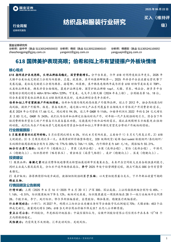 618大促 伯希和上市 服装行业 美护品牌 纺织品