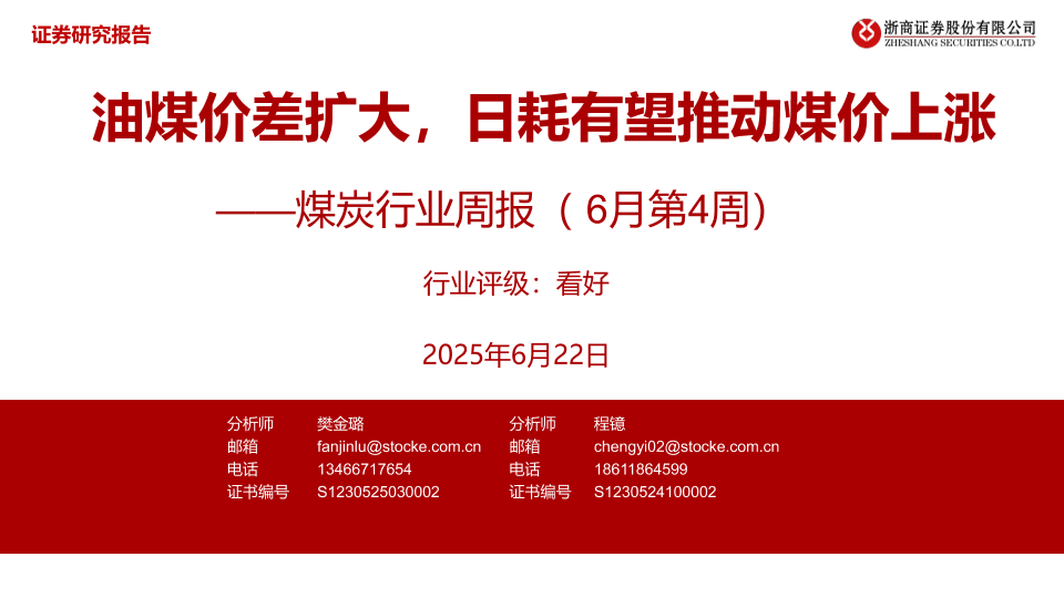 【浙商证券】【20250622】煤炭行业周报(6月第4周)_油煤价差扩大_日耗有望推动煤价上涨-31页