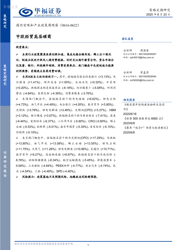 【华福证券】【20250623】国内宏观和产业政策周观察_中欧经贸高层磋商-10页