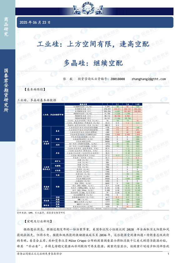【国泰君安期货】【20250623】工业硅_上方空间有限_逢高空配_多晶硅_继续空配-3页