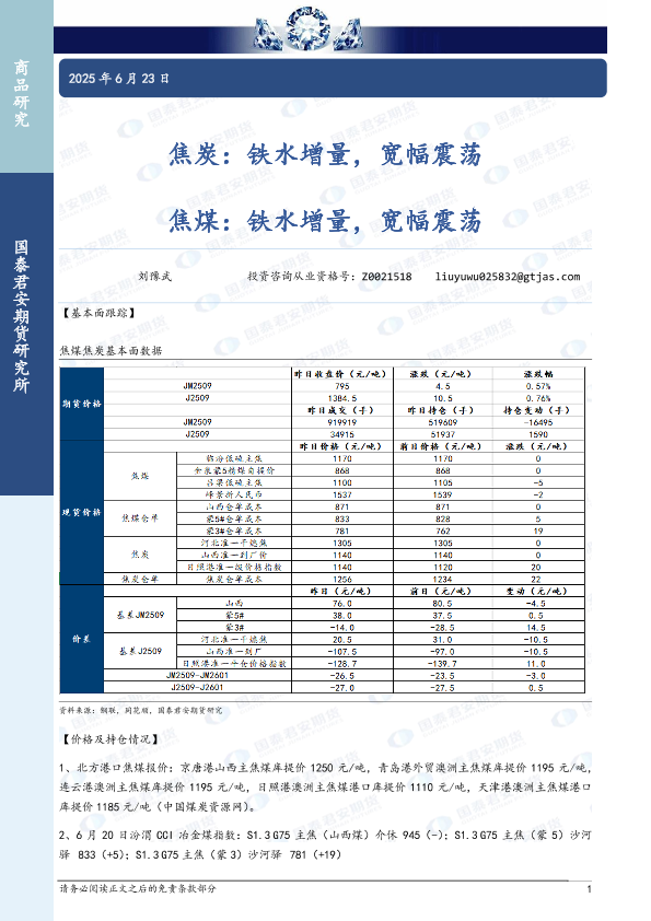 【国泰君安期货】【20250623】焦炭_铁水增量_宽幅震荡_焦煤_铁水增量_宽幅震荡-3页