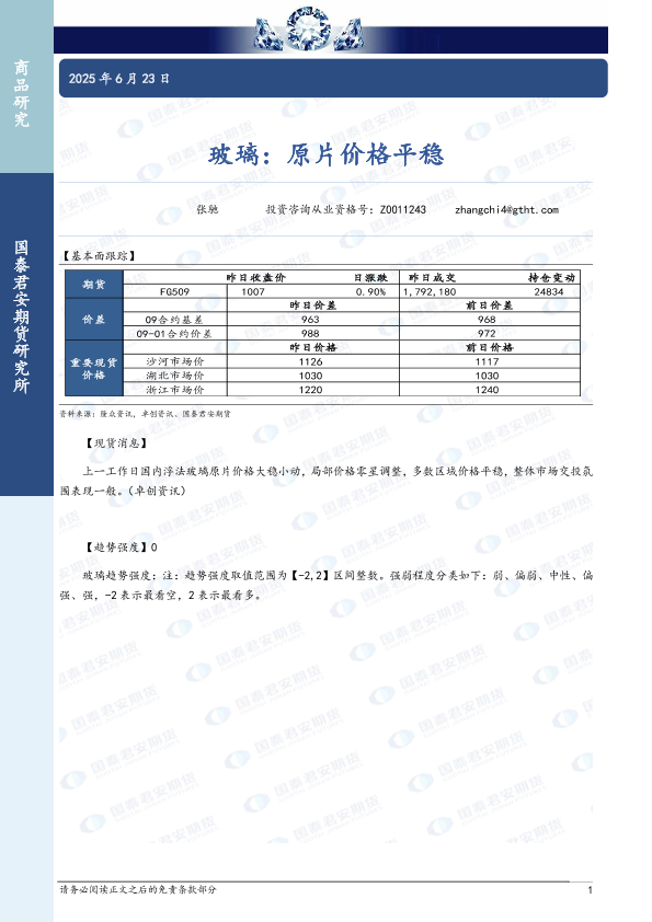 【国泰君安期货】【20250623】玻璃:原片价格平稳-2页