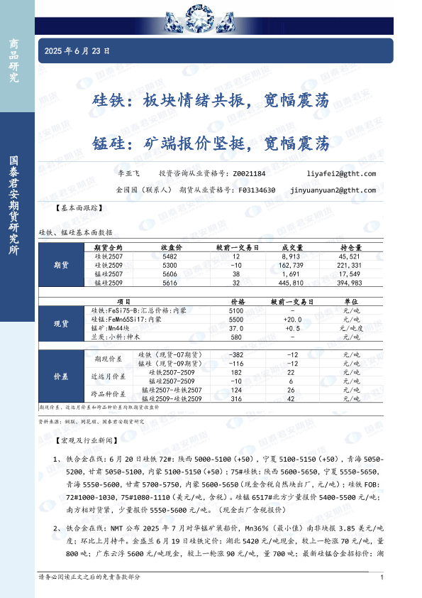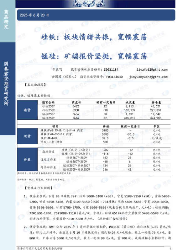 【国泰君安期货】【20250623】硅铁_板块情绪共振_宽幅震荡_锰硅_矿端报价坚挺_宽幅震荡-3页