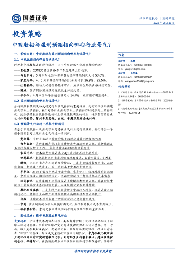 【国盛证券】【20250623】投资策略_中观数据与盈利预测指向哪些行业景气-21页