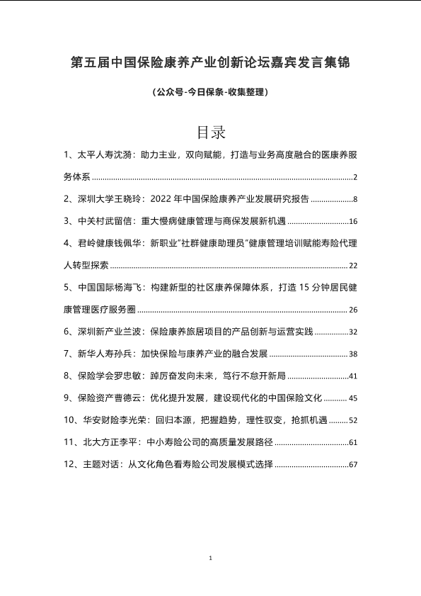 【今日保条】【2022】第五届中国保险康养产业创新论坛嘉宾发言集锦-74页