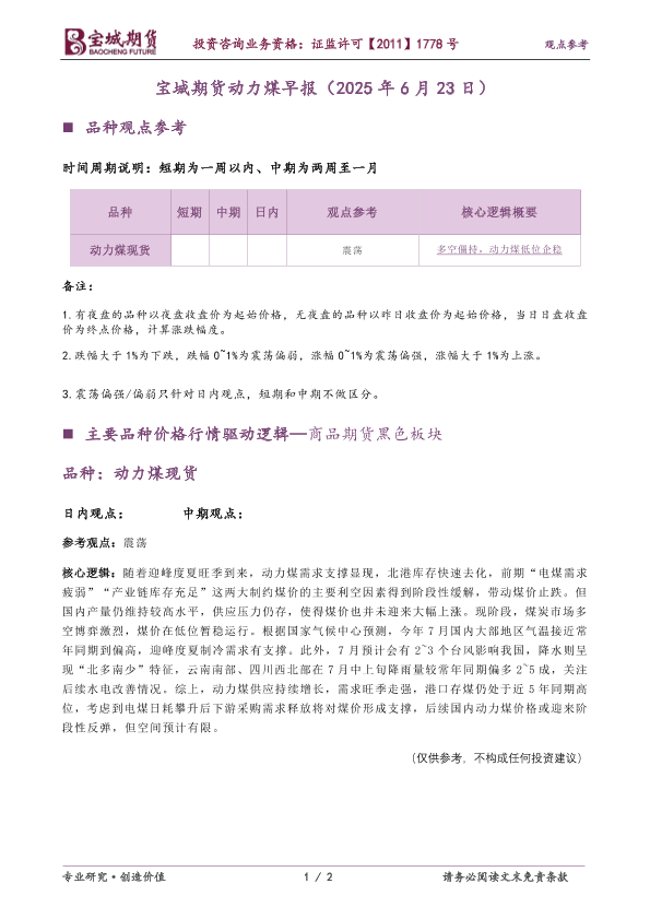【宝城期货】【20250623】宝城期货动力煤早报-2页