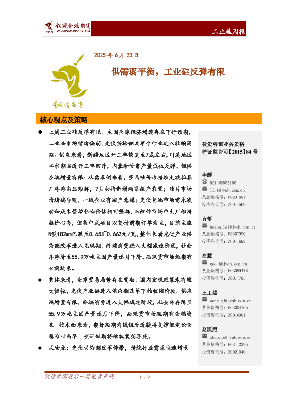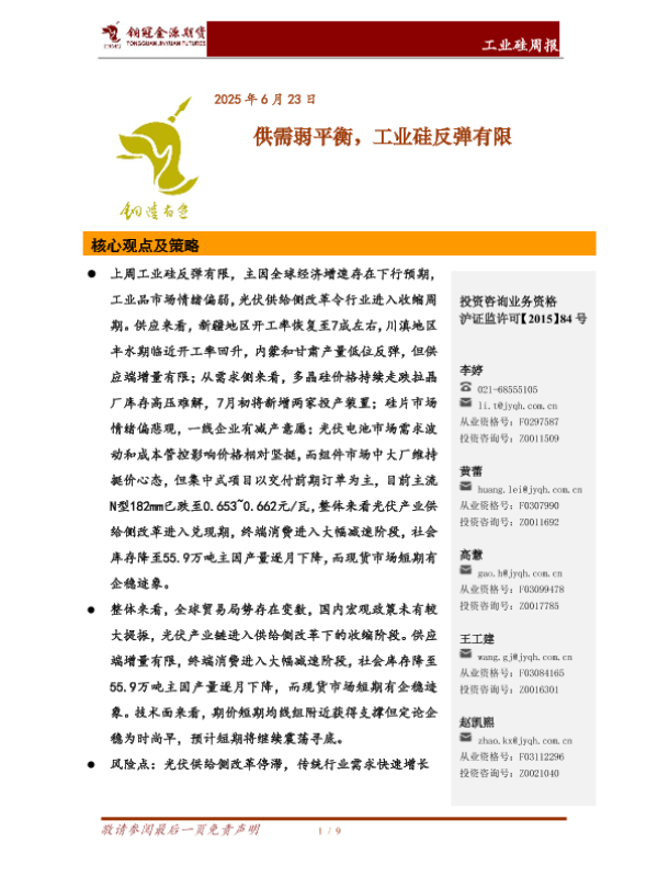 【铜冠金源期货】【20250623】工业硅周报_供需弱平衡_工业硅反弹有限-9页