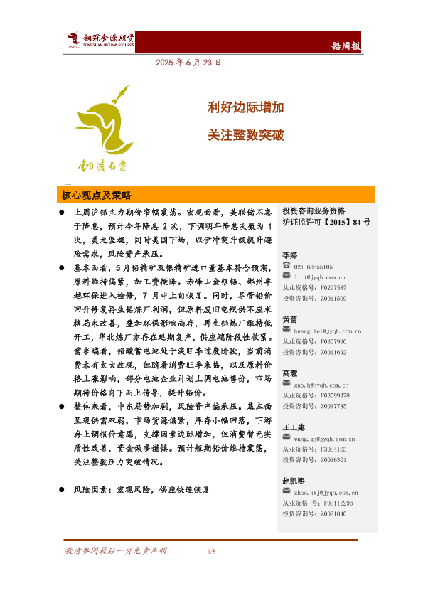 【铜冠金源期货】【20250623】铅周报_利好边际增加_关注整数突破-8页