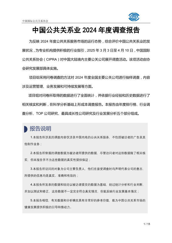 【中国国际公共关系协会】【202503】中国公共关系业2024年度调查报告-15页