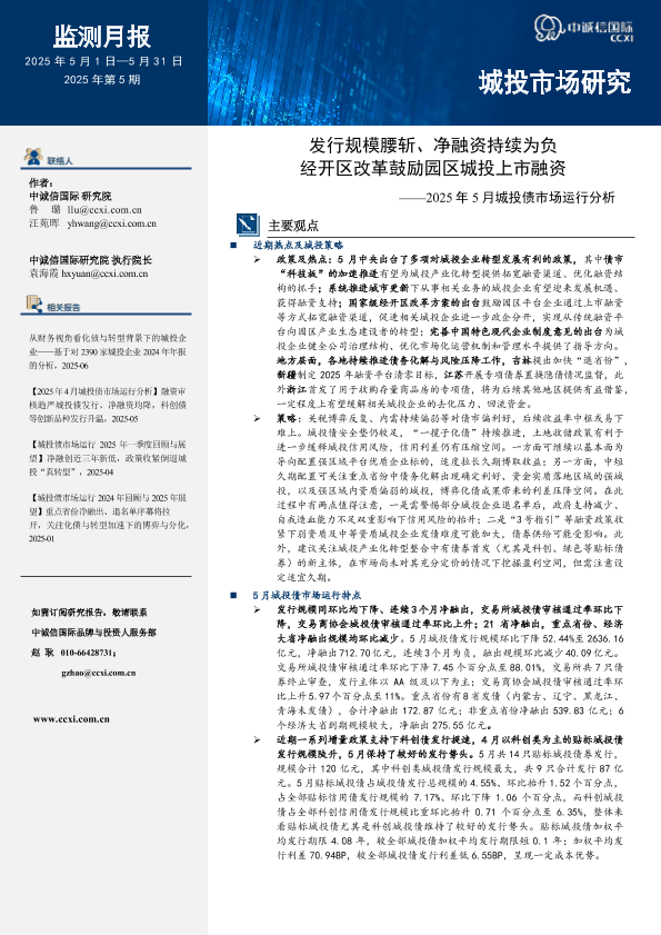 【中诚信国际】【202505】发行规模腰斩净融持续为负,经开区改革鼓励园区城投上市融资——2025年5月城投债市场运行分析-17页