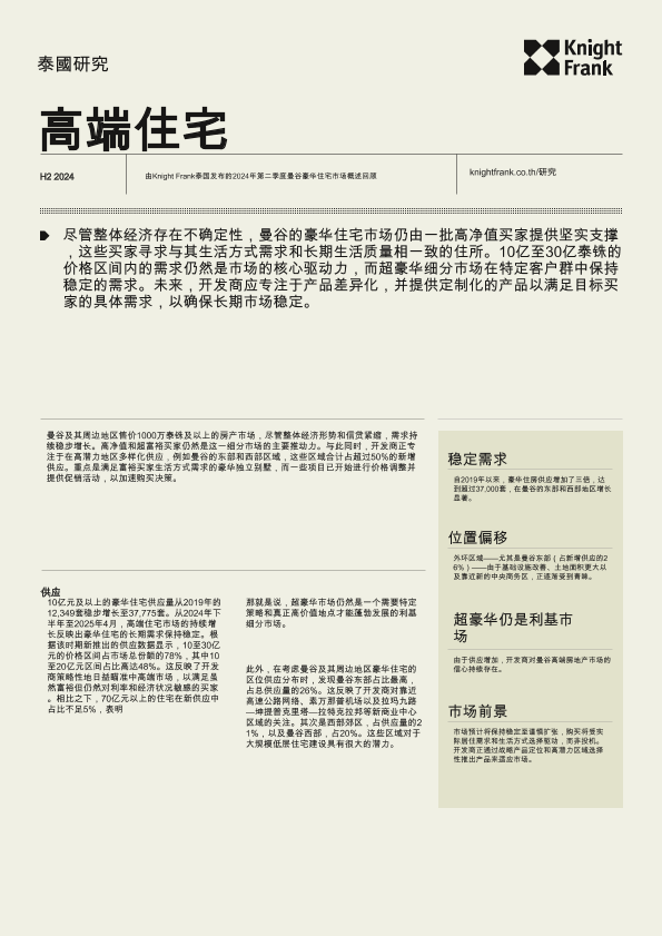【Knight Frank Thailand】【202407】房地产行业:2024年下半年曼谷豪华住宅市场-6页