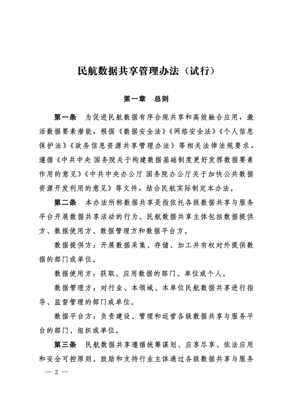 信息服务 数据共享 数据安全 管理办法 民航数据