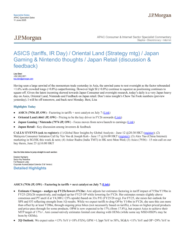 【J.P. Morgan】【20250611】ASICS(关税、投资者关系日)_东京迪士尼乐园运营商(战略会议)_日本游戏与任天堂相关看法_日本零售(讨论与反馈)-8页