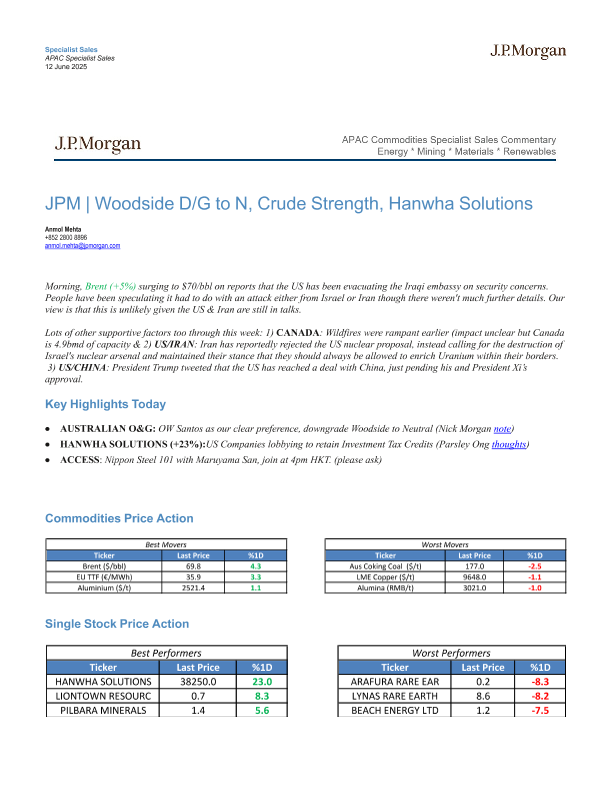 【J.P. Morgan】【20250612】摩根大通_伍德赛德评级下调至中性,原油走强,韩华解决方案-8页