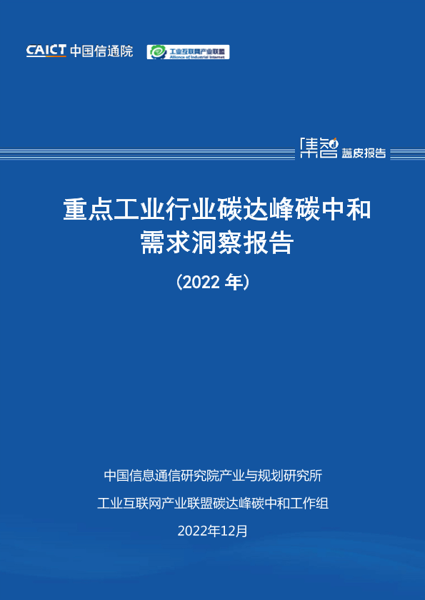 【中国信息通信研究院产业与规划研究所】【2022】重点工业行业碳达峰碳中和需求洞察报告-83页