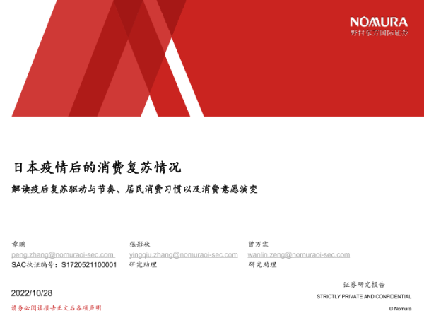 【野村东方国际证券】【20221028】日本疫情后的消费复苏情况-50页