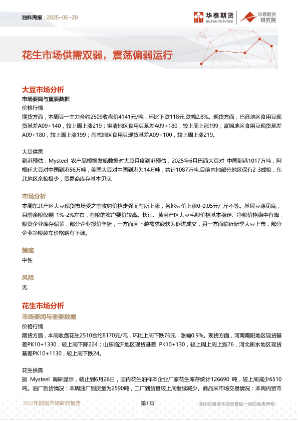 【华泰期货】【20250629】油料周报_花生市场供需双弱_震荡偏弱运行-9页