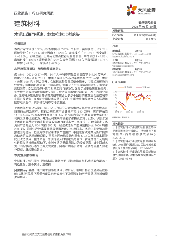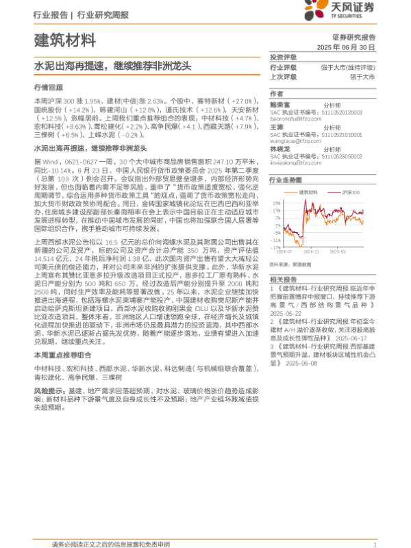 【天风证券】【20250630】建筑材料行业研究周报 水泥出海再提速, 继续推荐非洲龙头-6页