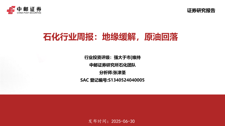 【中邮证券】【20250630】石化行业周报:地缘缓解,原油回落-16页