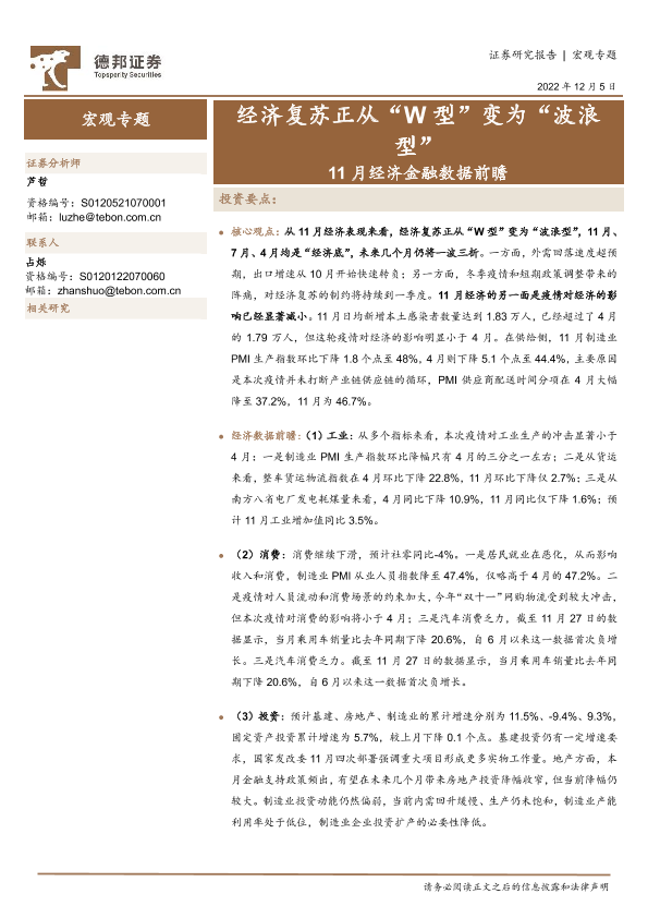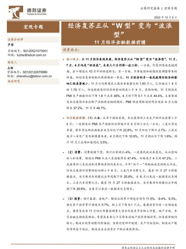 【德邦证券】【20221206】11月经济金融数据前瞻:经济复苏正从“W型”变为“波浪型”-13页