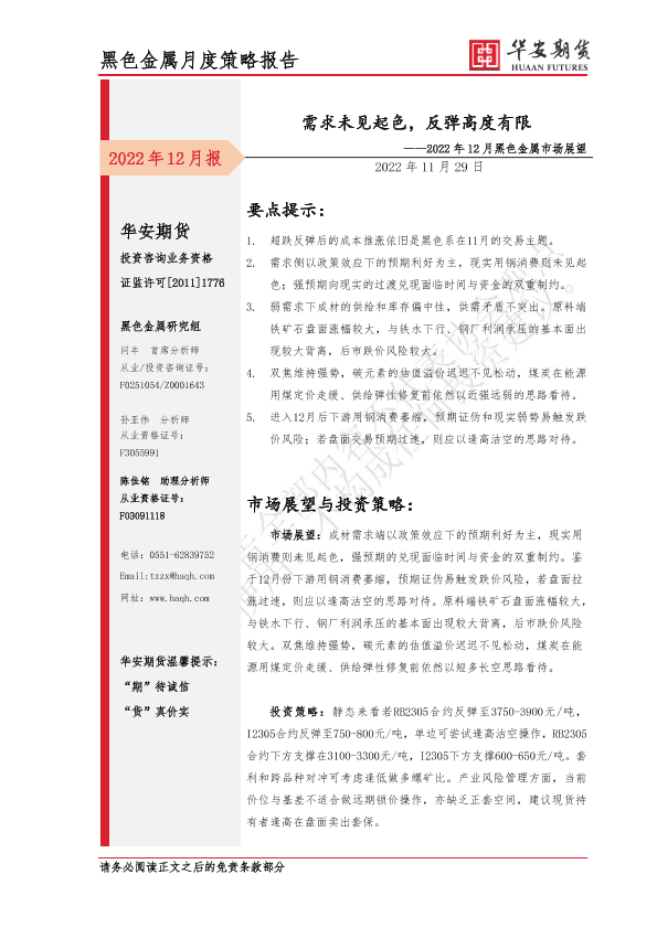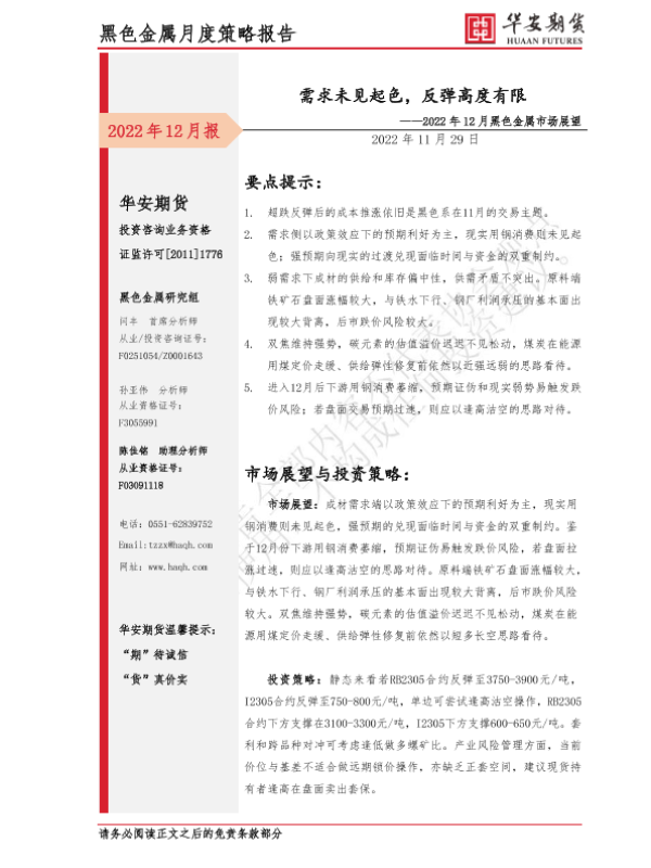 【华安期货】【20221129】2022年12月黑色金属市场展望:需求未见起色,反弹高度有限-19页