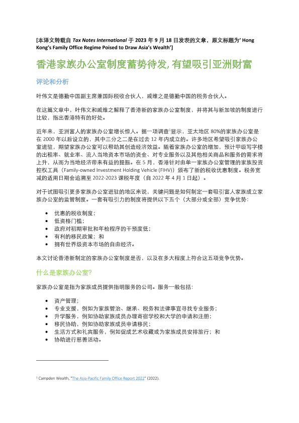 亚洲财富 家族办公室 税收优惠 金融 香港