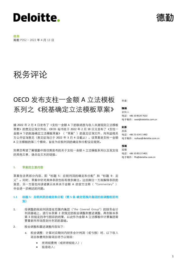 【德勤】【20220413】税务评论:OECD发布支柱一金额A立法模板系列之《税基确定立法模板草案》-7页