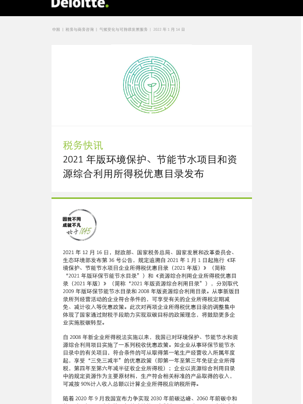 【德勤】【20220114】税务快讯:2021 年版环境保护、节能节水项目和资源综合利用所得税优惠目录发布-4页