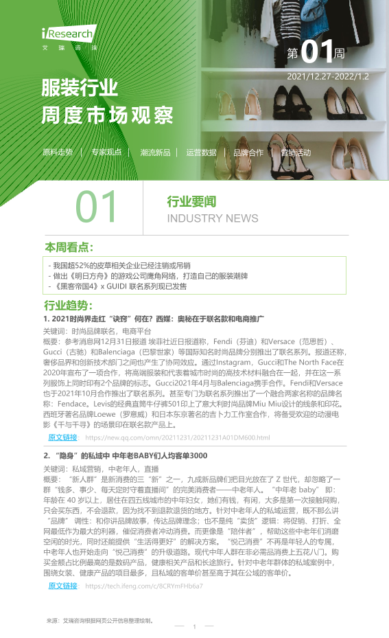 【艾瑞咨询】【20220102】2022年第1周:服装行业周度市场观察-9页