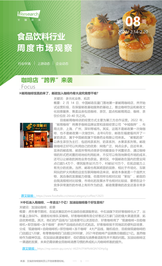 【艾瑞咨询】【202202】2022年第8周:食品饮料行业周度市场观察-9页