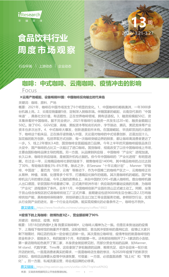 【艾瑞咨询】【20220327】2022年第13周:食品饮料行业周度市场观察-10页