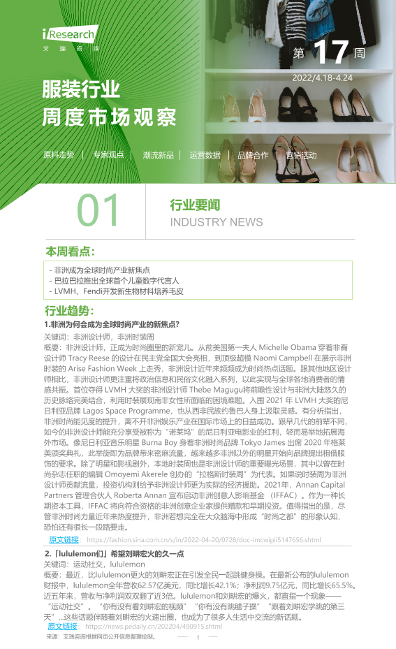 【艾瑞咨询】【20220424】2022年第17周:服装行业周度市场观察-7页