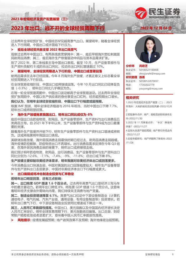 【民生证券】【20221204】2023年宏观经济及资产配置展望(三):2023年出口,逃不开的全球经贸周期下行-15页