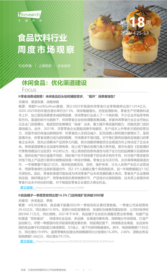 【艾瑞咨询】【20220501】2022年第18周:食品饮料行业周度市场观察-9页